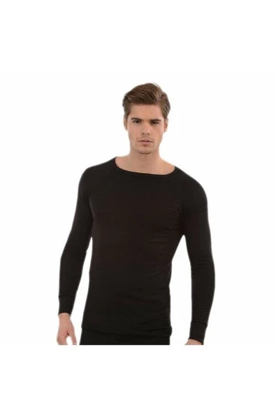 Hasyün Erkek Uzun Kollu Siyah Fanila Yün İçlik Termal İçlik