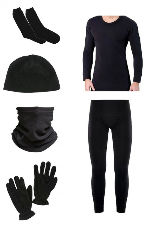 Siyah Termal İçlik Takımı Polar Bere Boyunluk Eldiven Havlu Çorap Seti - Asker Kolisi