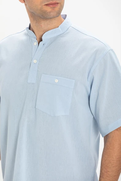 Kısa Kol Şile Bezi Tek Cepli Hakim Yaka Erkek Yazlık Tshirt Buz Mavi 3027 S Buz Mavi