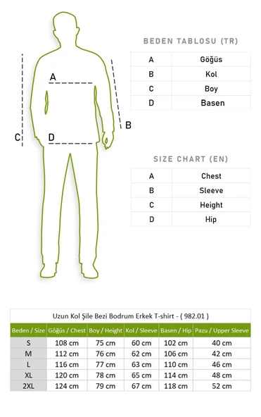 Uzun Kol Şantuklu Pamuk Bodrum Erkek Yazlık Tshirt Haki 9008 S Haki