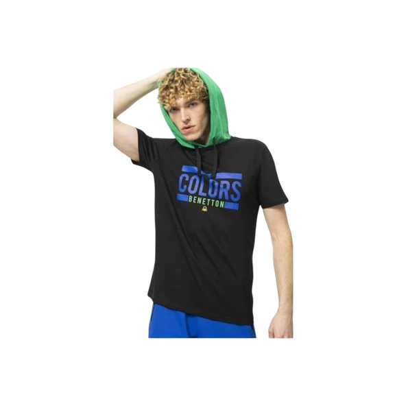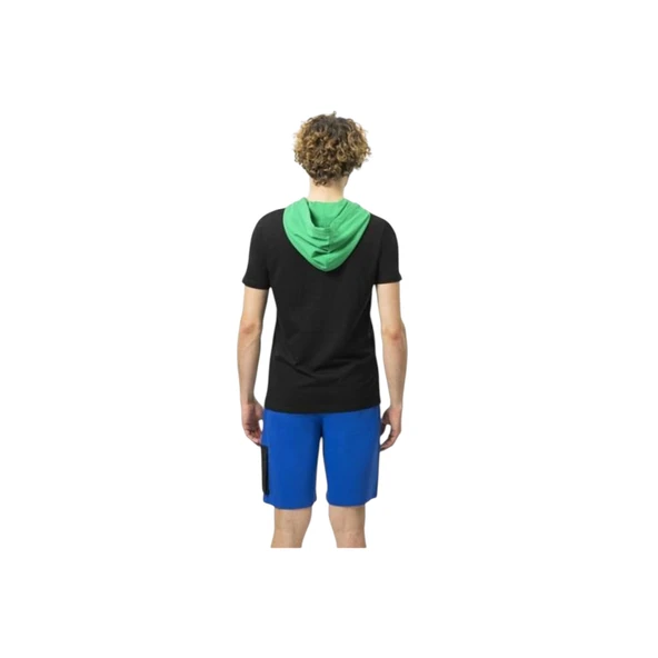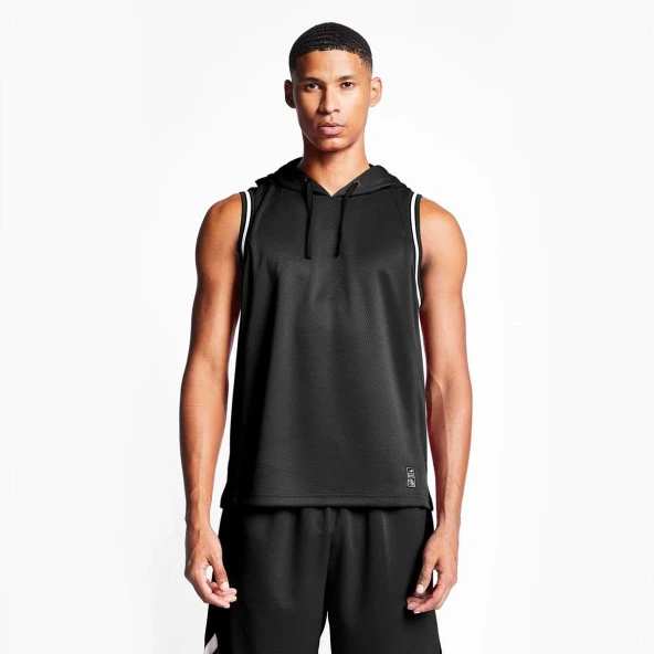 Erkek Lette Kapüşonlu Armalı Esnek Kolsuz Siyah T-Shirt