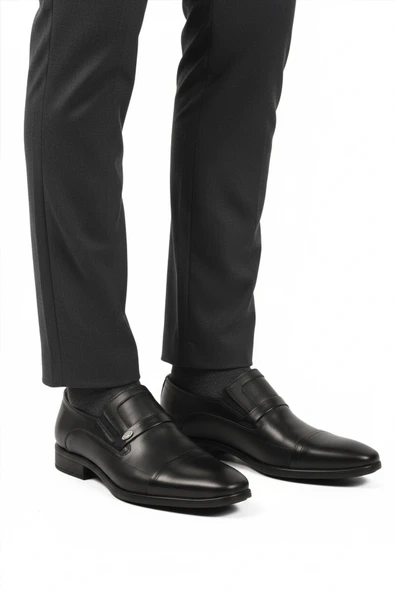 Aspor Siyah Hakiki Deri Bağcıksız Erkek Klasik Ayakkabı