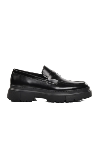Aspor Siyah Geniş Kalıp Erkek Loafer Ayakkabı