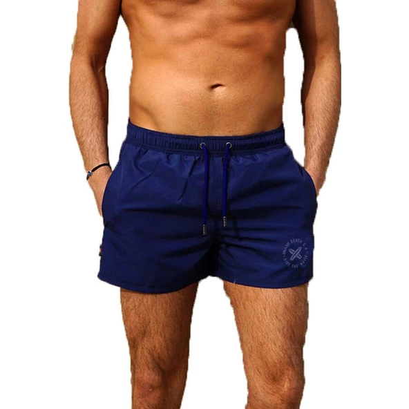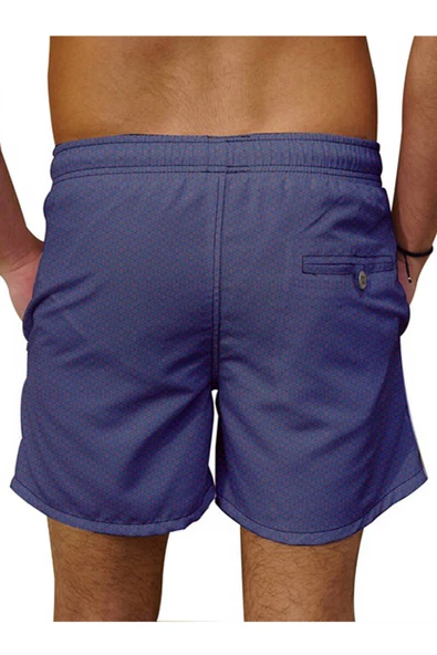 Lacivert Su İtici Özellikli Baskılı Erkek Kısa Deniz Şort Mayo -