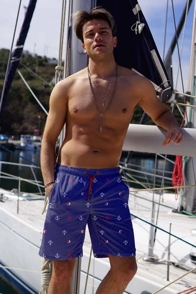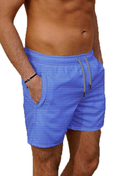 Mavi Su İtici Özellikli Dijital Baskılı Erkek Deniz Şort Mayo - 157-Mavi