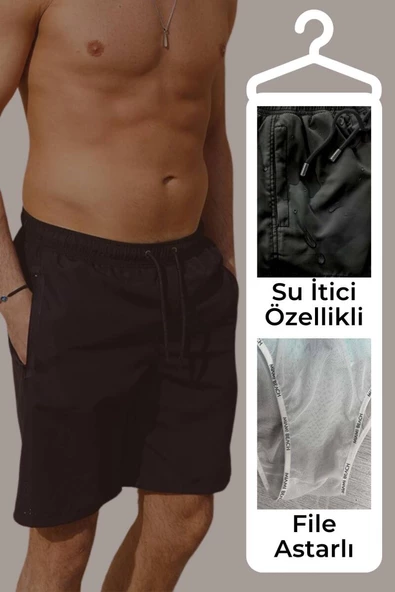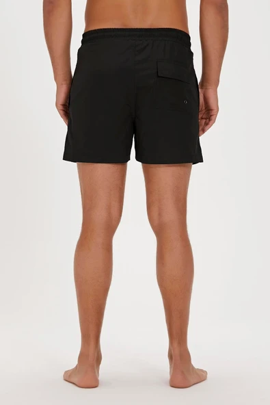 Siyah Uzun Model Su İtici Özellikli Düz Renk Erkek Plaj Deniz Şort Mayo - 2203-Siyah