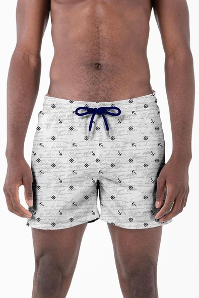 Su İtici Özellikli Dijital Baskılı Erkek Plaj Deniz Şort Mayo - 0204-Beyaz