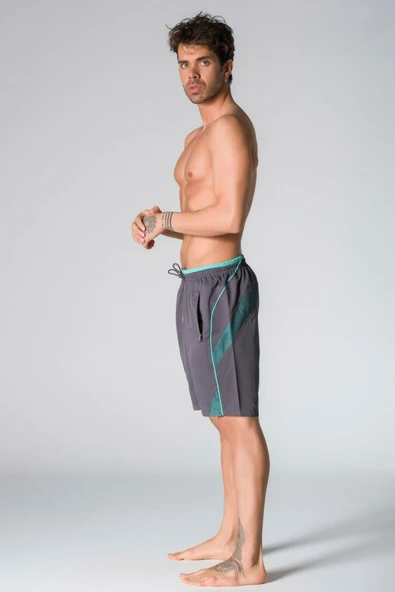Su İtici Özellikli Dijital Baskılı Erkek Plaj Deniz Şort Mayo - 163-Füme