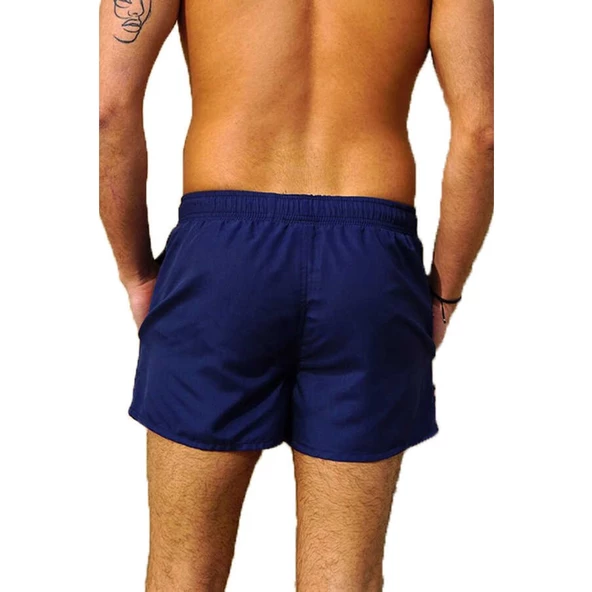 Lacivert Diz Altı Uzun Model Su İtici Özellikli Likralı Esnek Kumaş Erkek Plaj Deniz Kapri Şort - 941-Lacivert
