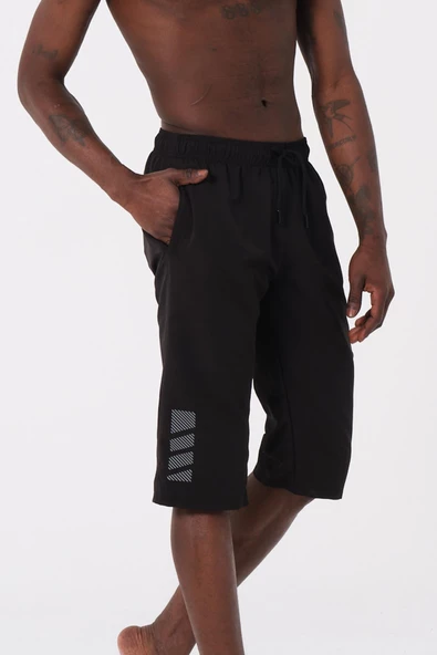 Siyah Diz Altı Uzun Boy Basic Model Su İtici Özellikli Erkek Plaj Deniz Kapri Şort - DG341-Siyah