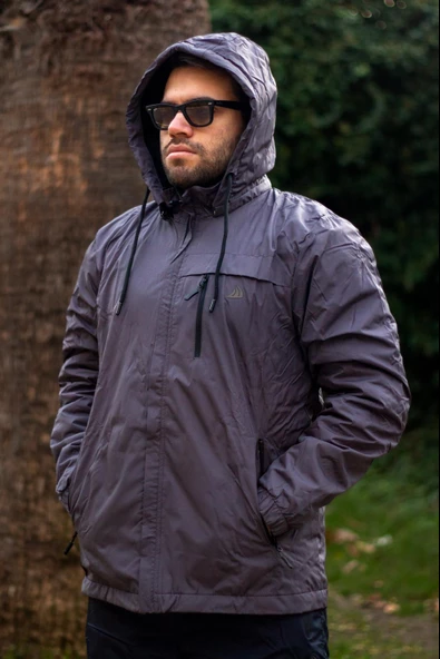 Erkek Antrasit Suya Dayanıklı Rüzgar Geçirmez Çıkarılabilir Kapüşonlu Balıkçı Motorcu Mont 23EMNTR860