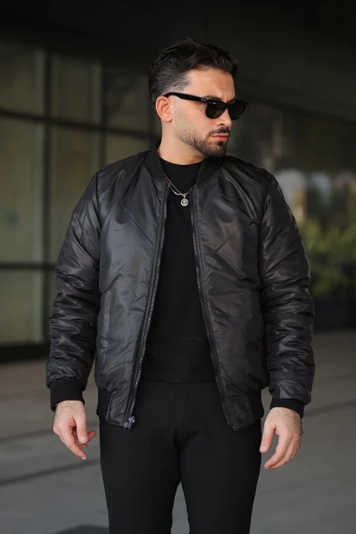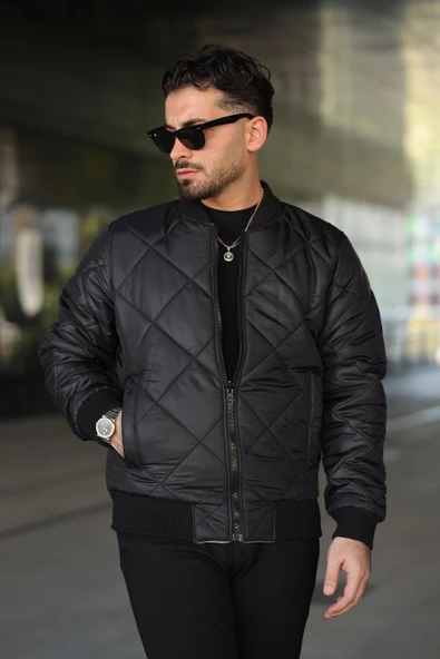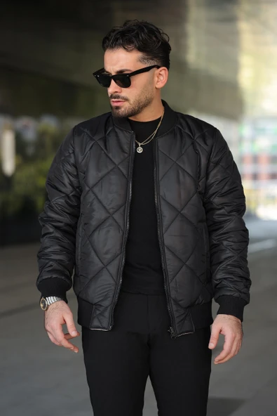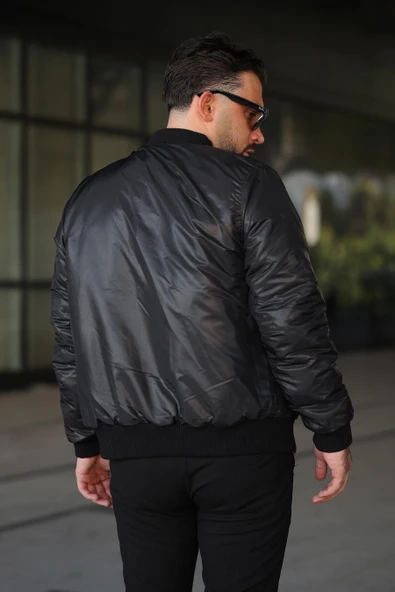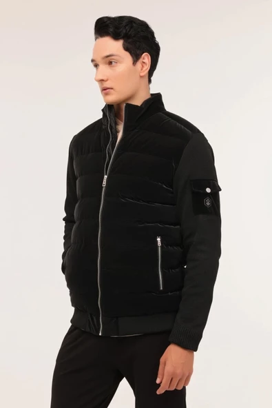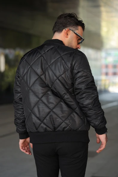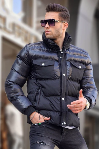 Madmext Siyah Dik Yaka Cep Detaylı Şişme Mont 5741