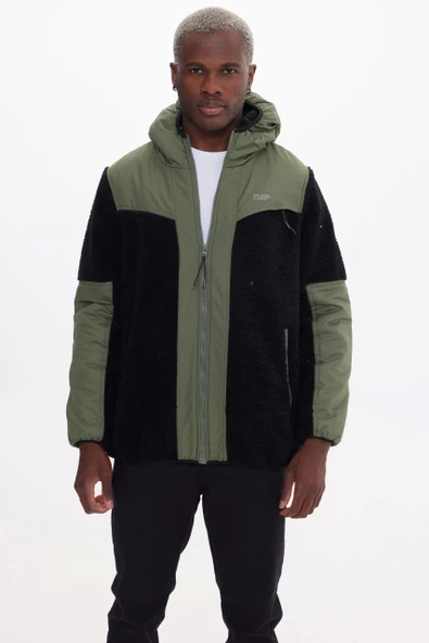 Erkek Haki Suya Dayanıklı Rüzgar Geçirmez Çıkarılabilir Kapüşonlu Balıkçı Motorcu Mont 23EMNTR860