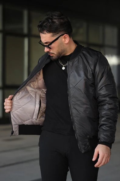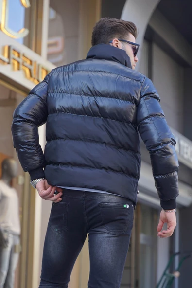 Erkek Dar Kesim Karbon Deri Siyah Şişme Mont RAR01228