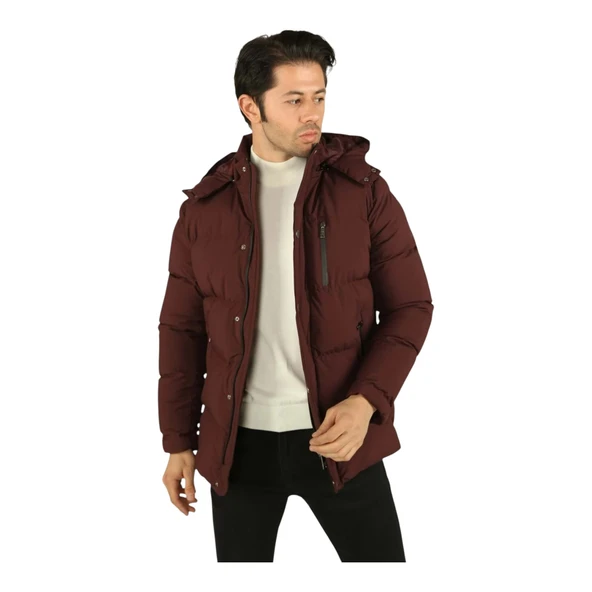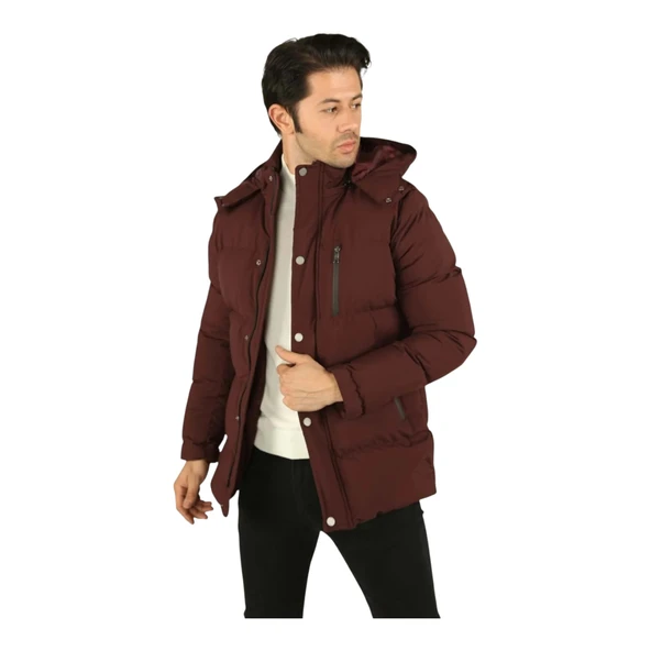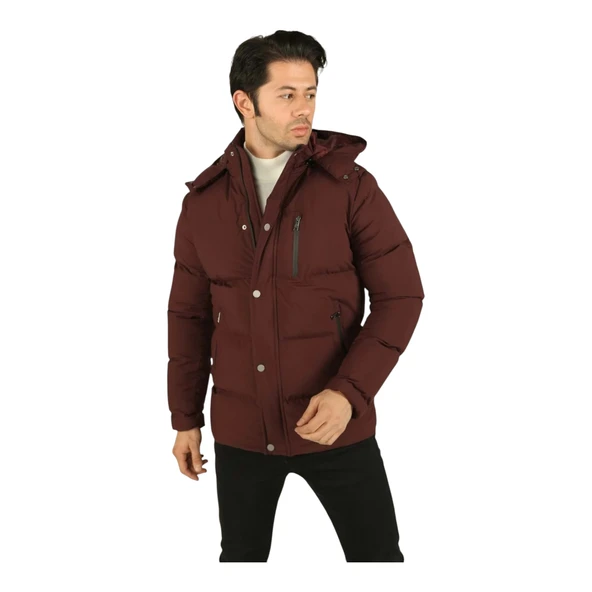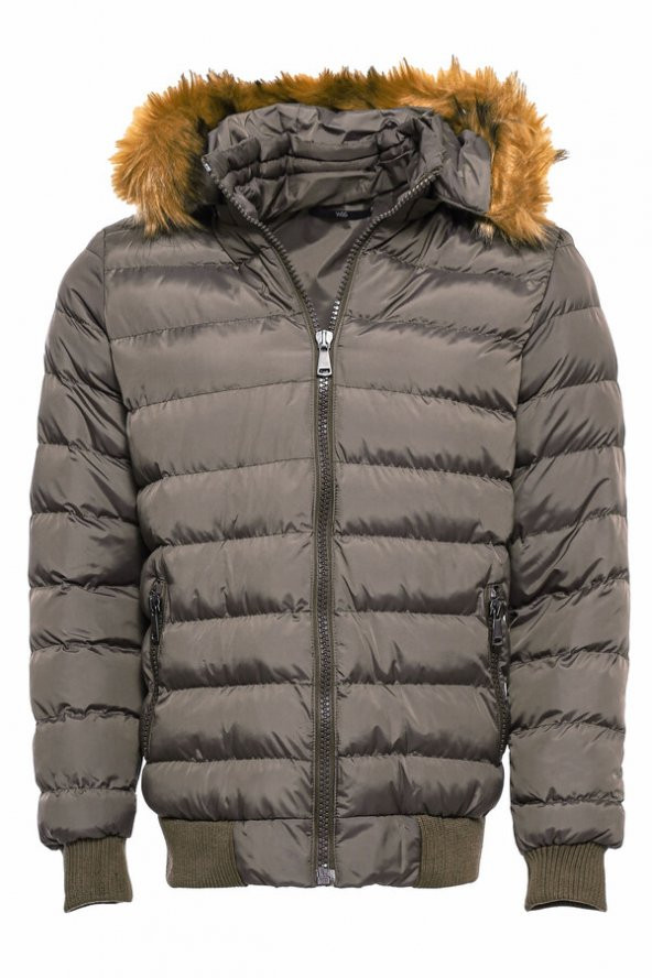 Kürklü Kahverengi Erkek Şişme Mont Wessi