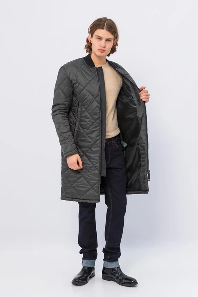 Erkek Regular Fit Kışlık Çok Cepli Çift Yön Fermuarlı Bomber Yaka Uzun Kapitone Şişme Mont