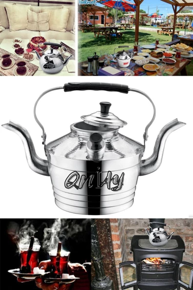 QNİAY Çift Taraflı Alüminyum Çaydanlık No:22 Süzgeçli Muhabbet Çaydanlık (kutulu) Kamp Ateş Ev Tipi