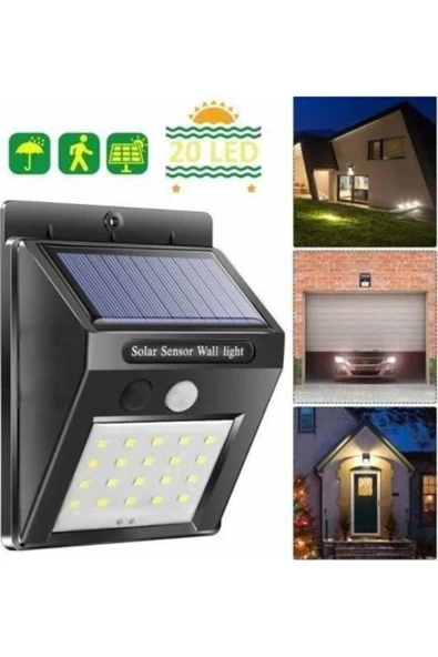 Pazariz Işık Sensörlü Güneş Enerjili Solar Duvar Kapı Kamp Bahçe Lambası Fotoselli Projektör 20 Led