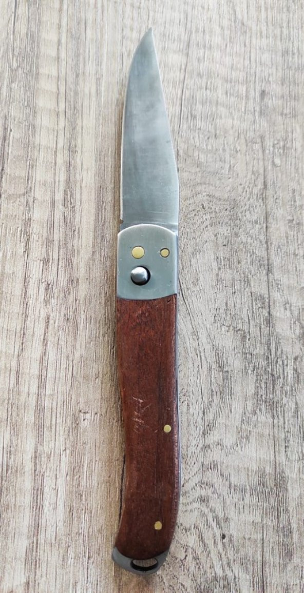 DÜĞMELİ ÇAKI İsim Yazdırılabilir Kamp Bıçağı Ahşap Saplı Avcı Bıçağı Outdoor Ekipman