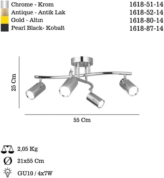 Lıpale 4’lü Krom Plafonyer Odası Avize Salon Avize Tavan Avize Sarkıt Avize
