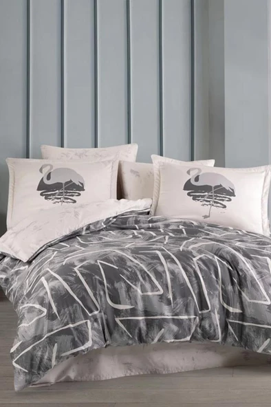 Terry Pamuk Saten Çift Kişilik Nevresim Takımı Gri