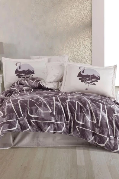Terry Pamuk Saten Çift Kişilik Nevresim Takımı Mürdüm