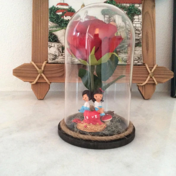 Aşk Temalı Mika Fanus Teraryum Detaylı Dekoratif Biblo Model 1