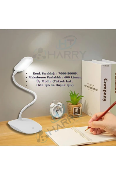 harry 400 Lümen Dokunmatik Şarjlı Beyaz Işık Akrobat Masa Lambası 3 Modlu Kitap Okuma Lambası