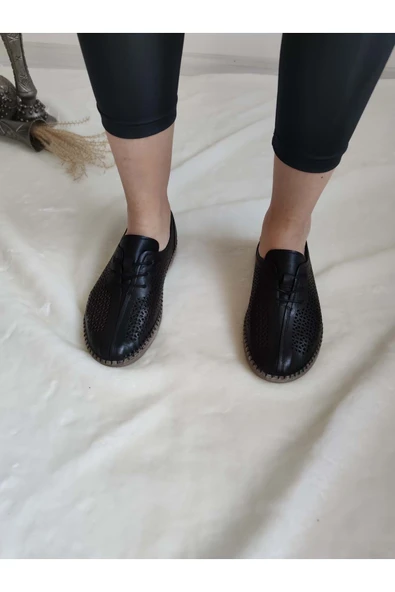 Venüs Siyah Hakiki Deri Kadın Casual Ayakkabı
