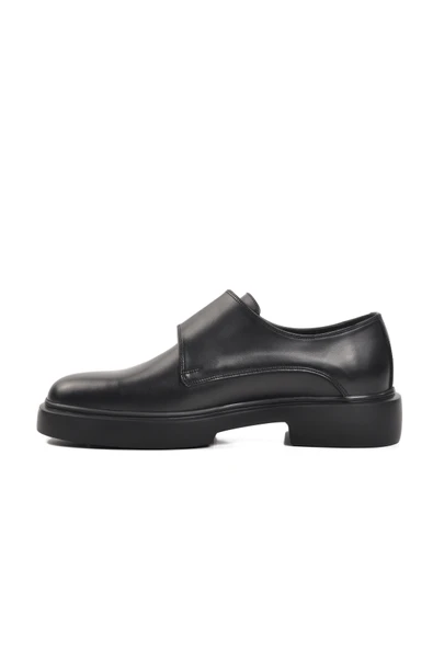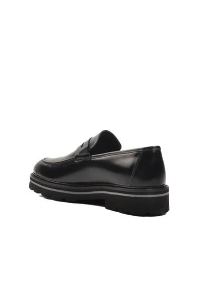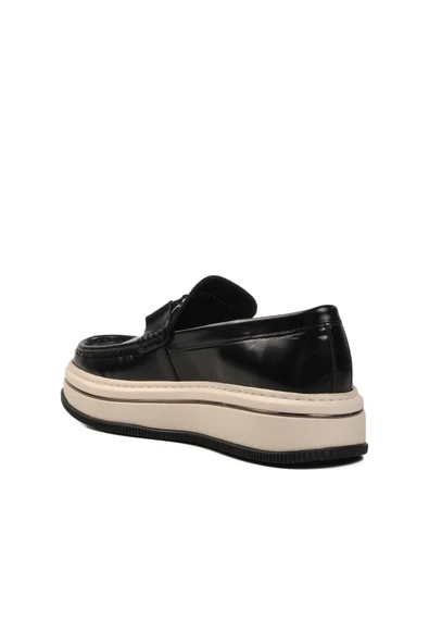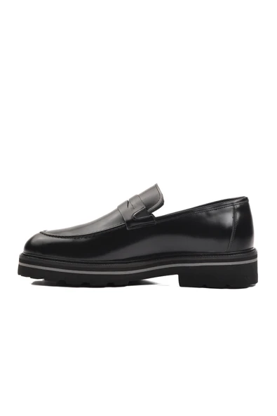 Aspor Siyah Açma Hakiki Deri Loafer Ayakkabı