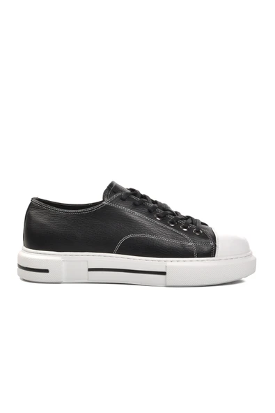 Marcomen Siyah Beyaz Hakiki Deri Erkek Casual Ayakkabı