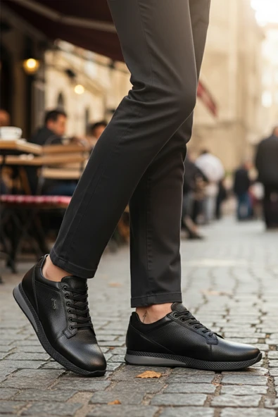 Marcomen Siyah Hakiki Deri Erkek Casual Ayakkabı