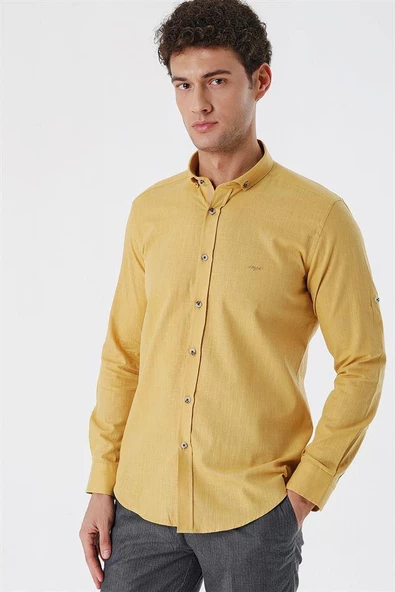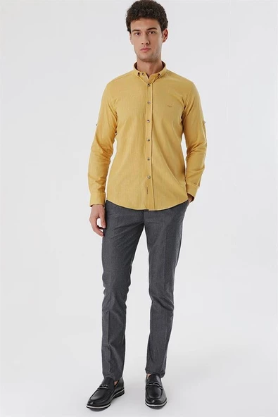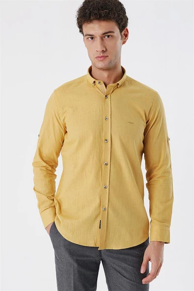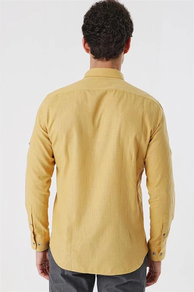 Bal Kısalabilir Kollu Cepsiz Biyeli %100 Pamuk Casual Slim Fit Dar Kesim Gömlek 1004230179