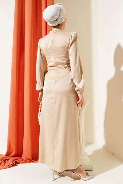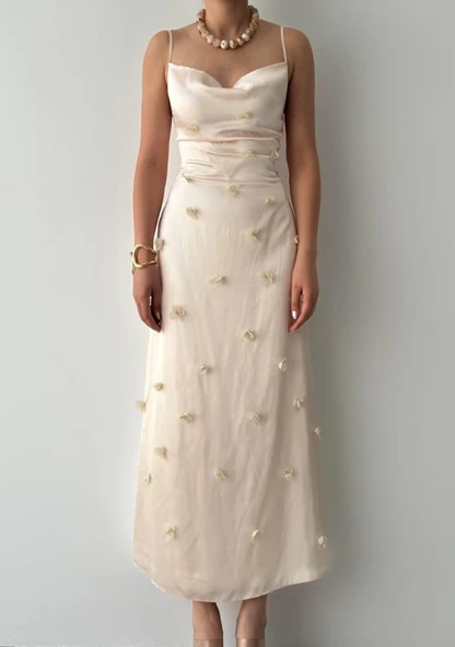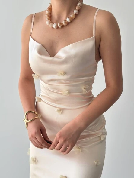 Yanları İp Detaylı Saten Elbise Bal Köpüğü