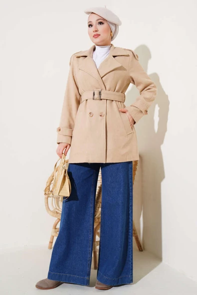 Omuz Apoletli Kısa Kaşe Kaban Bal Köpüğü