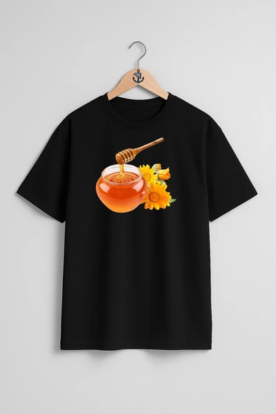 Oversize Kavanoz Bal Göğüs Tasarımlı Unisex T-Shirt