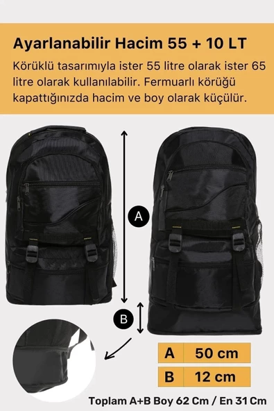 Körüklü Dağcı 55+10Litre Dağcı Kamp Spor Çanta