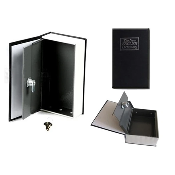 Gizli Kasa İngilizce Sözlüğü Kitap Görünümlü Anahtarlı Gizli Mini Çelik Kasa Kilitli