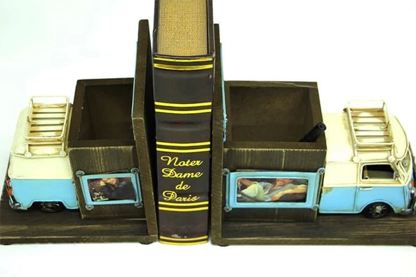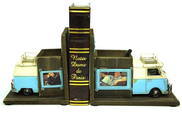Dekoratif Metal Minibüs Kitap Tutucu Kalemlik Çerçeve Hediyelik