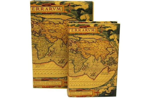 Kutu Kitap Harita 2'li Set Kitap Kutusu Dekoratif Hediyelik
