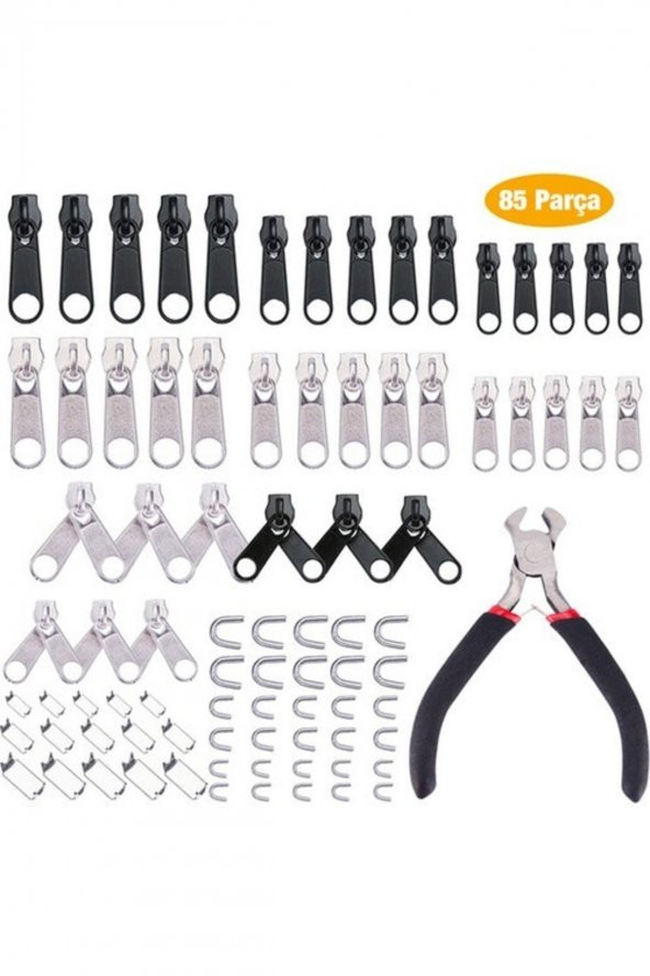 Ally 85 Parça Fermuar Başlığı Yedek Parça Onarım Tamir Seti Çanta Çadır Pantolon Fermuar Ucu