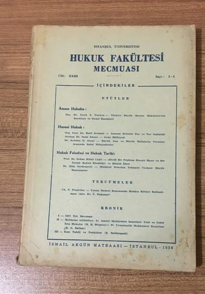 İSTANBUL ÜNİVERSİTESİ HUKUK FAKÜLTESİ MECMUASI 1958 Cilt XXIII Sayı 3 - 4 (Sahafiye Kitap)