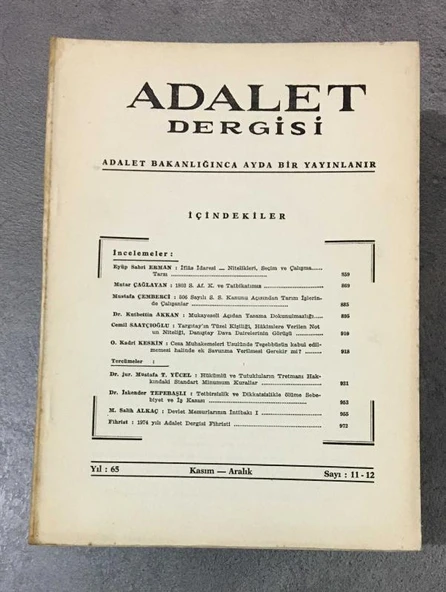 ADALET DERGİSİ, Yıl:60, Sayı:11, Kasım 1969, "Kadının Suçluluğu- Mustafa Y. Yücel" (Sahafiye Kitap)