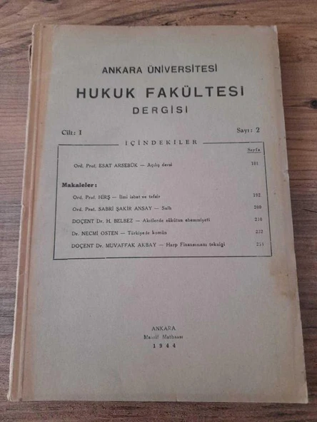 Hukuk Dergisi Cilt:I,Sayı:1 Nisan 1944 "Milli Koruma Kanunu-Kira Akitleri-Tehliye" (Sahafiye Kitap)