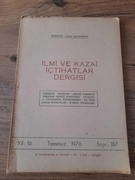 İLMİ VE KAZAİ İÇTİHATLAR DERGİSİ, Nisan 1976,Yıl:16,Sayı:184 "Noterlerin Sorumluluğu" (Sahafiye Kitap)