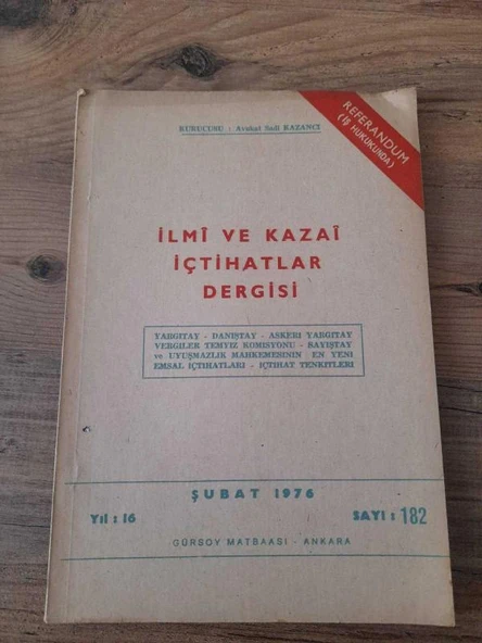 İLMİ VE KAZAİ İÇTİHATLAR DERGİSİ ŞUBAT 1976, Yıl:16, Sayı:182 "Yaralamak (Bıçakla)" (Sahafiye Kitap)