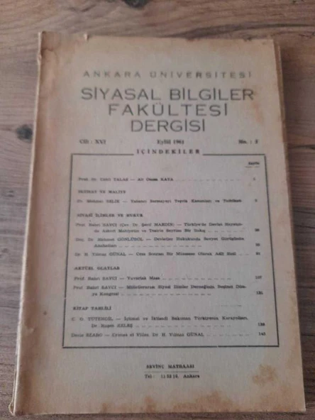 Ankara Üniversitesi Hukuk Fakültesi Dergisi Cilt:XVII,No:3,Eylül 1961 "Bahri Savcı: Yuvarlak Masa" (Sahafiye Kitap)