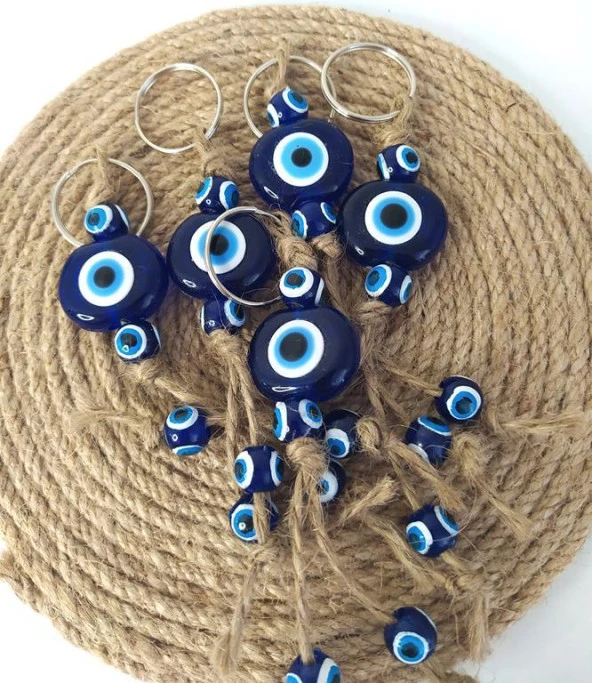 Nazar Boncuk Anahtarlık 5 Adet Kötü Göz Kovucu Nazar Hand Made Hasır Mavi Boncuklu Nazarlı Araba Süsü