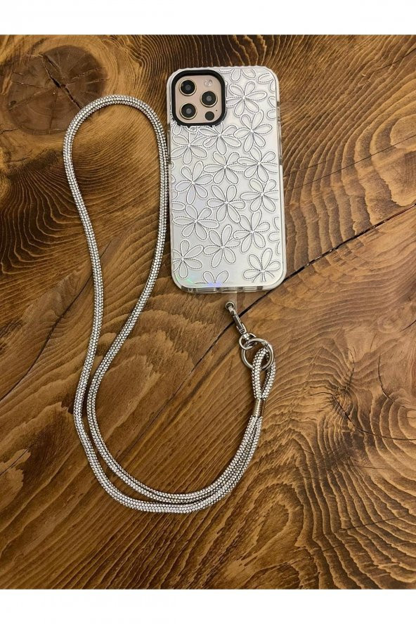 Caseworldtr Swarovski Taşlı Janjanlı Gümüş Telefon Boyun Askısı