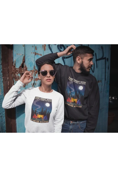 playbackmoda Akiki Tasarım Doğa Aşkı - Kamp Sevgisi - Yıldızlarla Sweatshirt